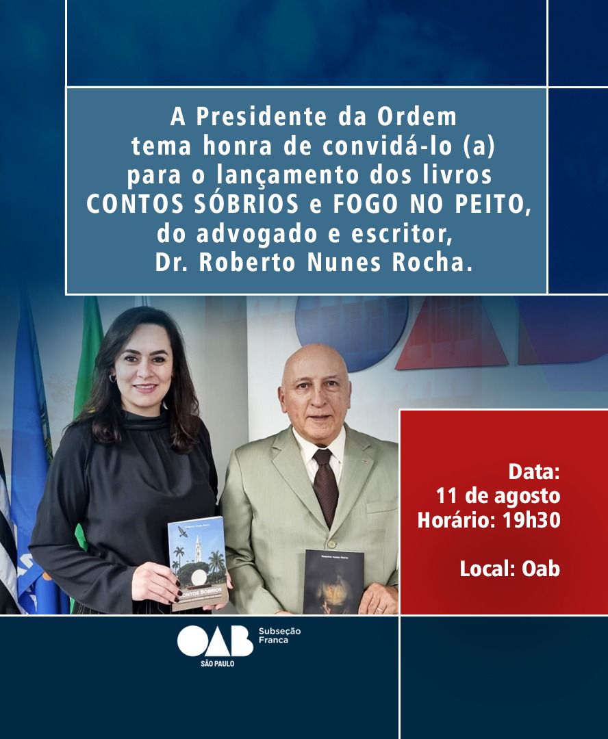 📅 11 de dezembro ⏰ 19h00 às 21h00 📍 OAB Franca 🎟 Inscrições totalmente gratuitas, no local do evento.