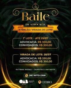 É com grande entusiasmo que anunciamos o tão aguardado Baile da Advocacia 2025! Uma noite de celebração e confraternização...