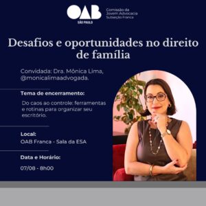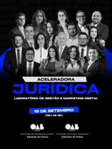 COMISSÃO DE MARKETING JURÍDICO E COMISSÃO DA JOVEM ADVOCACIA 19/09 – 9h às 18h   TRILHA Advocacia Empreendedora na Prática…