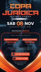 🏆⚽ Vem aí a COPA JURÍDICA – 2ª Edição!📅 Sábado, 08 de novembro📍 Clube dos Servidores – 8h 💥...