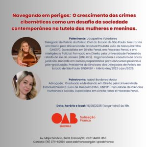 A OAB Franca convida a todas advogadas, advogados, juízes, promotores de justiça, defensores públicos e serventuários da Justiça, para...