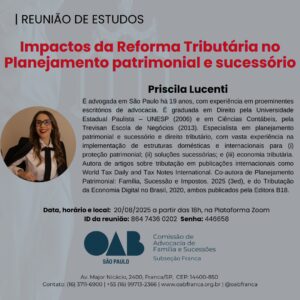 Dia: 24/01/2022 (terça-feira)Das 9h às 12hNa área gourmet (último piso) da Casa da Advocacia e Cidadania Francana.