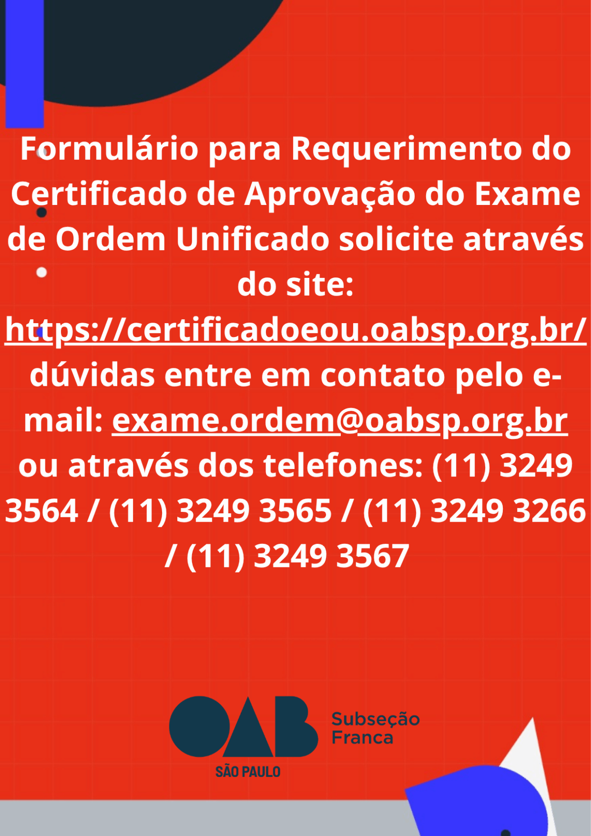 Clique Aqui e solicite o seu certificado de aprovação do EXAME da OAB.